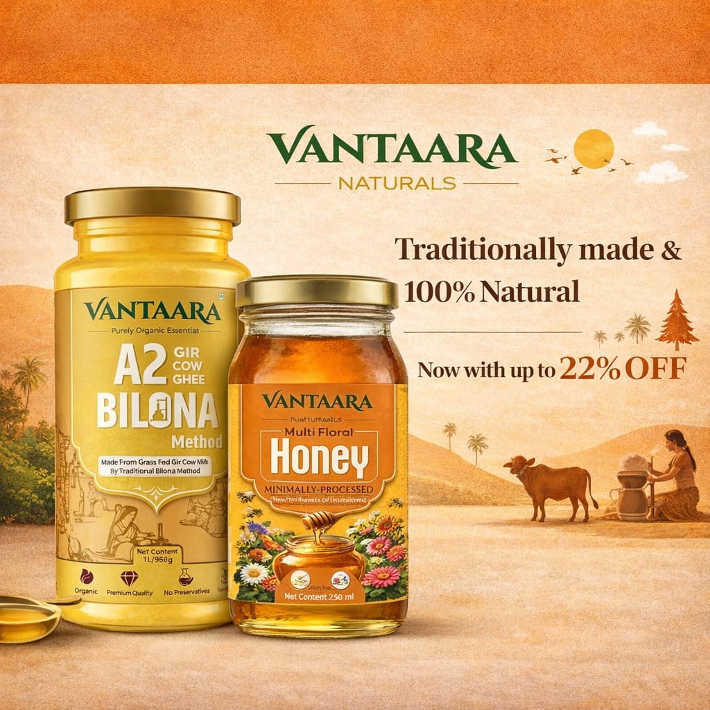 At Vantaara Naturals, we believe purity is not a trend β itβs a responsibility. In a world filled with shortcuts and mass production, we choose to walk the slower, honest path of tradition. We exist to bring back authentic nourishment through time-honored practices like Bilona-crafted A2 ghee and naturally sourced honey. Every product we create reflects care, transparency, and respect for nature. We serve families who value health, trust, and conscious living. No compromise, no adulteration β only the richness of nature in its purest form.